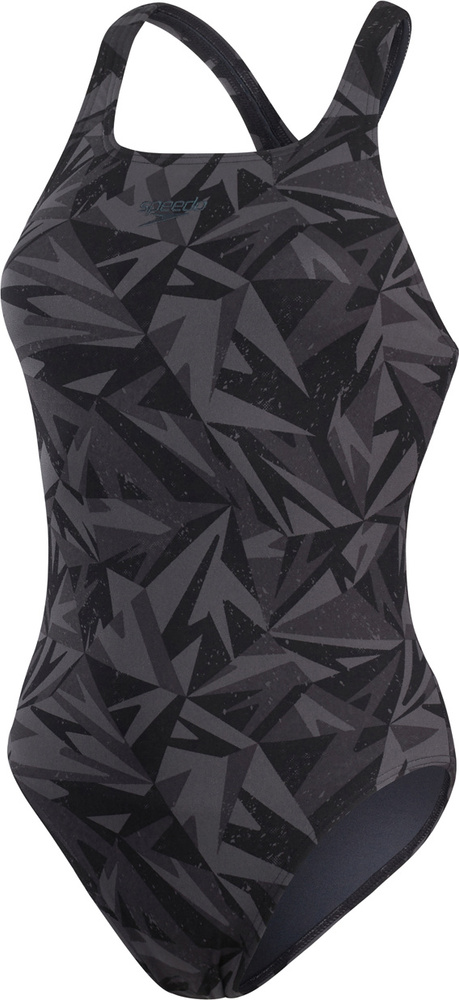 Sportowy strój kąpielowy, w którym celebrujemy markę speedo, prezentuje kultowe logo boom w postaci "rozbitego" nadruku w uderzających odcieniach szarości i czerni.