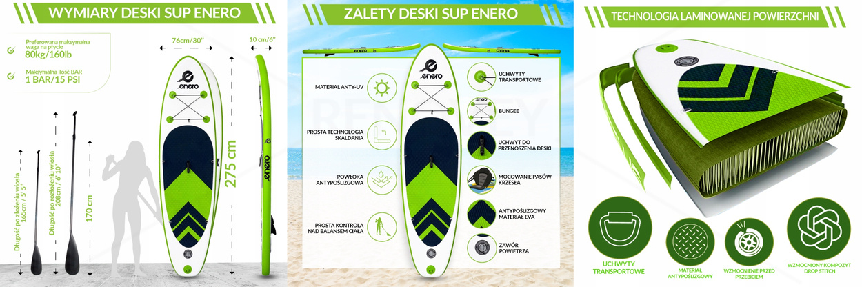 Deska SUP Enero idealnie sprawdzi się wśród zaawansowanych i początkujących użytkowników, którzy chcą się zapoznać z nową odmianą surfingu.