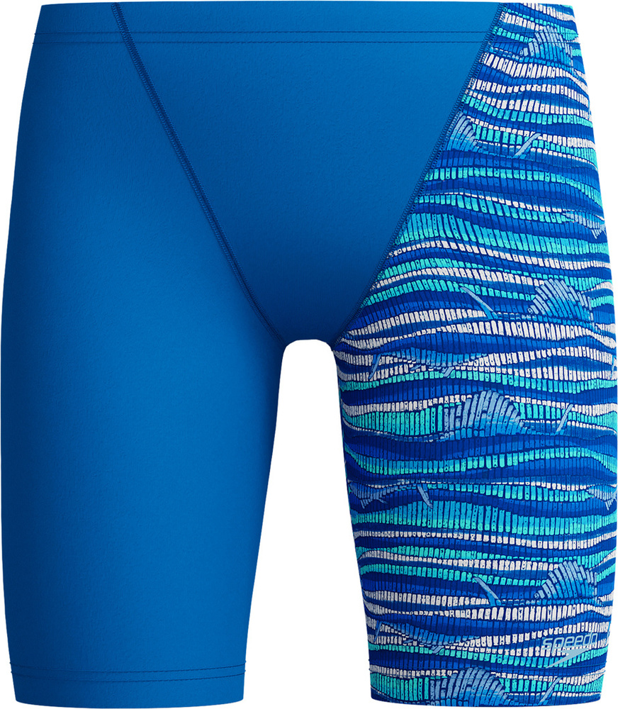 Te chłopięce jammer-shorts z asymetrycznym nadrukiem oceanu to styl i wygoda w jednym.