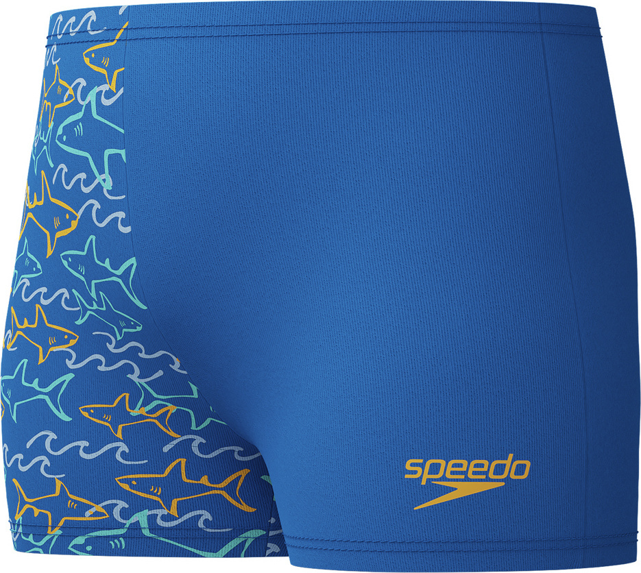 W szortach kąpielowych z nadrukiem rekina zabawa nie będzie miała końca.