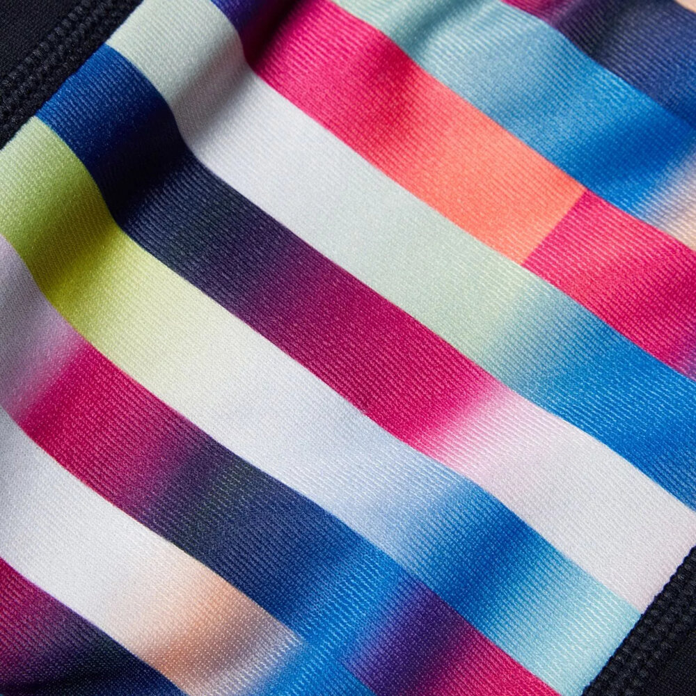 Z przodu posiadają podszewkę w kształcie litery v dla komfortu i dyskrecji, a wewnętrzny sznurek umożliwia młodym pływakom dostosowanie dopasowania.