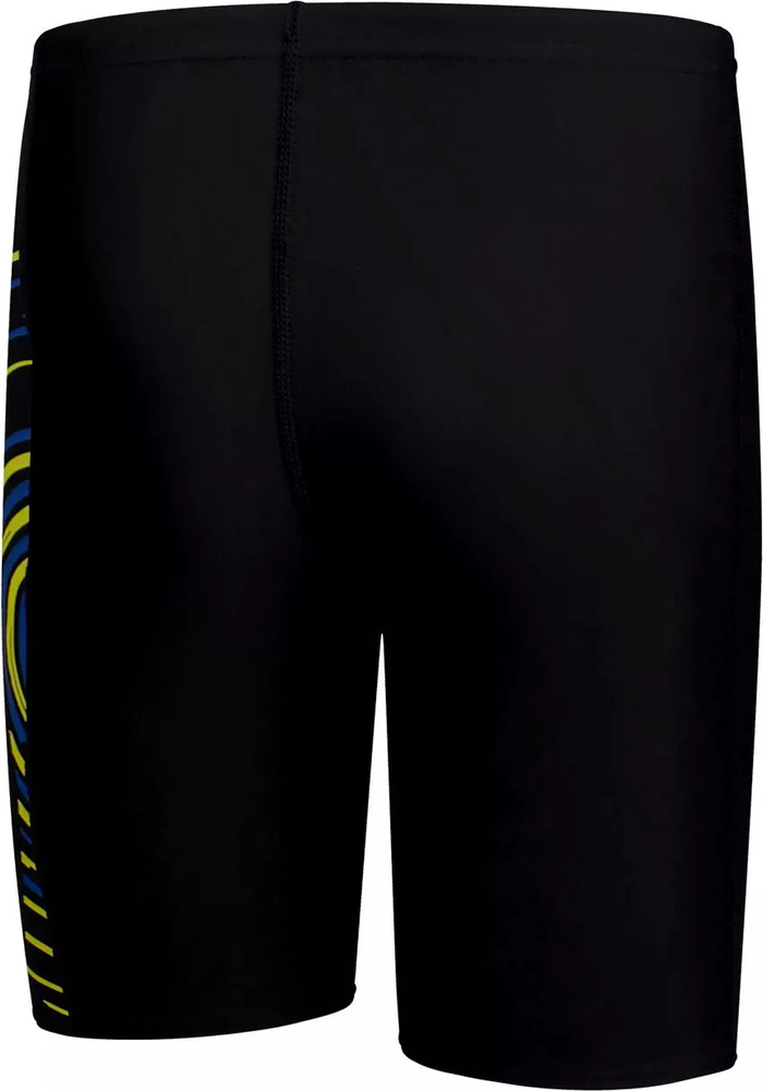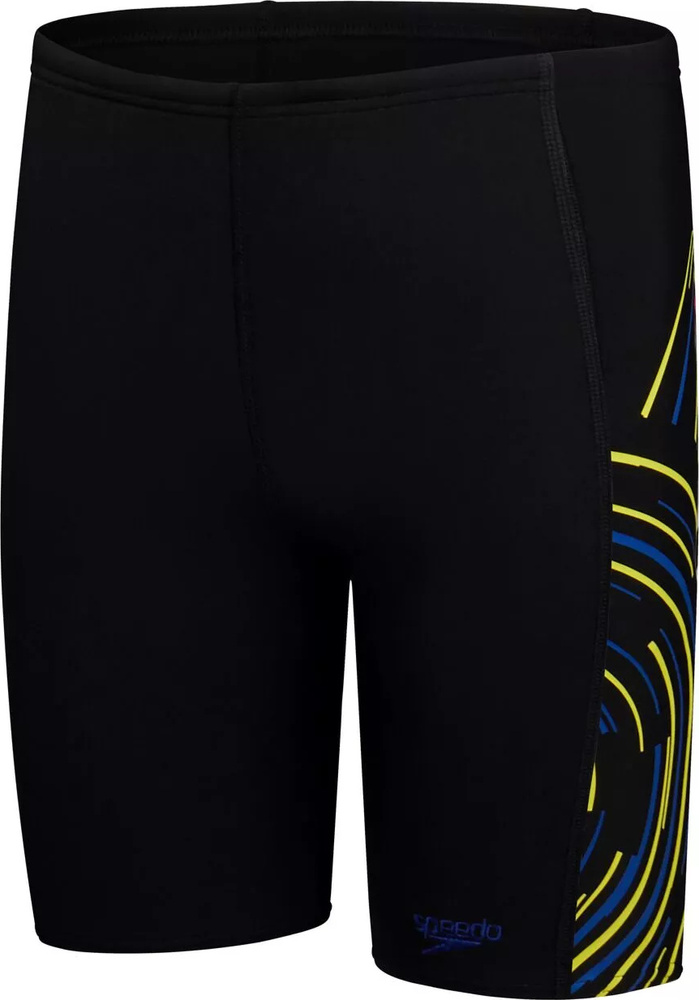 Wyposażony w żółto-niebieską grafikę plastizolową, ten elegancko wyglądający czarny jammer jest stylowy i dyskretny.