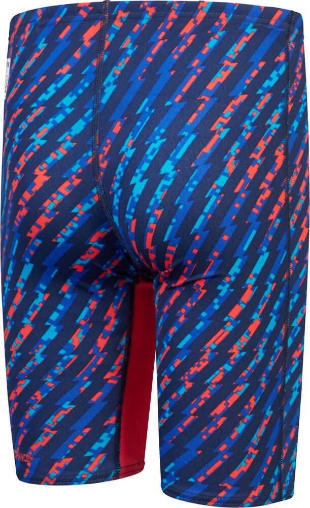 Stworzone specjalnie dla młodych pływaków, spodenki te posiadają wyrazisty niebiesko-czerwony nadruk graficzny na całej powierzchni.
