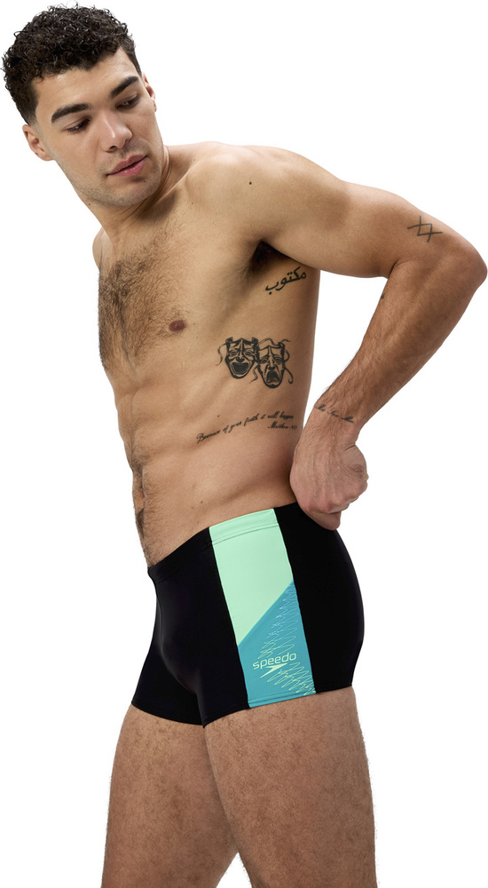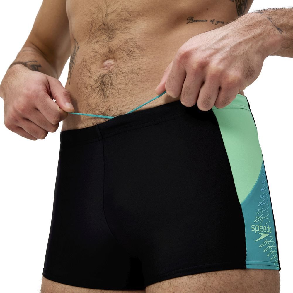 Ten wygodny klasyk speedo ma kolorowe, dwukolorowe panele boczne i sznurek w pasie dla bezpiecznego dopasowania.