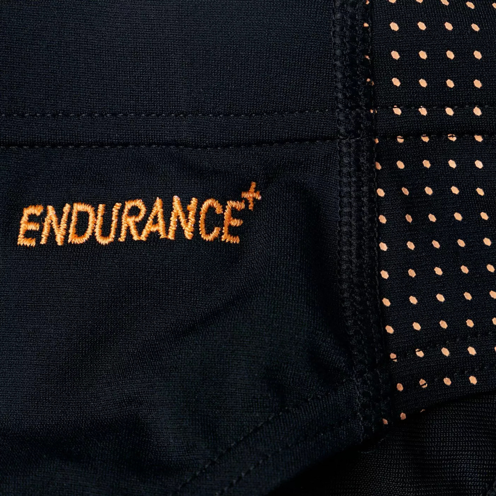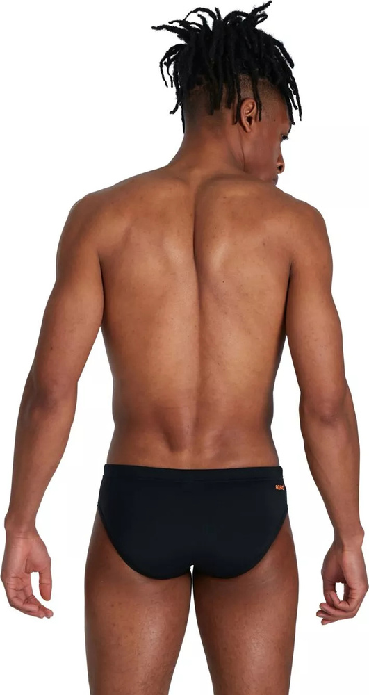 Model tech 7cm brief z subtelnym panelem z efektem tekstury w kolorze pomarańczowym zapewnia doskonały wygląd podczas treningu.