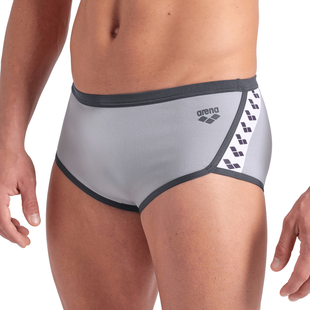 Pochodzące z kolekcji arena icons kąpielówki wyróżniają się kontrastowymi przeszyciami i ukośnymi paskami z logo inspirowanymi oryginalnymi projektami marki.