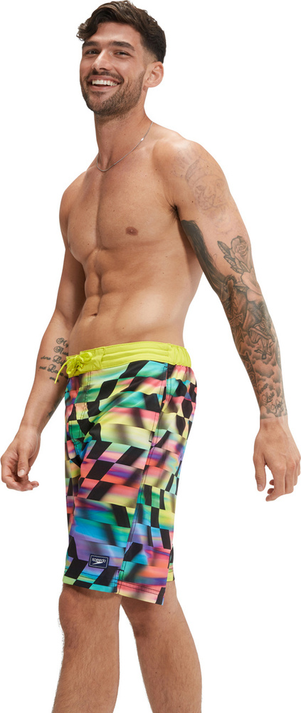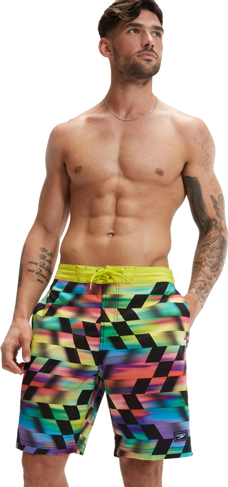Złap trochę promieni w efektownych spodenkach watershort z rozmytym wielokolorowym nadrukiem w szachownicę.