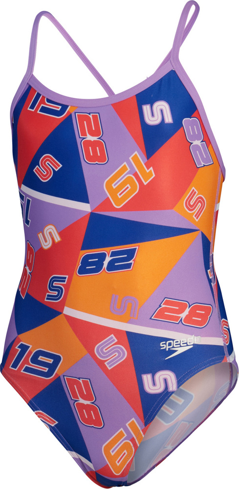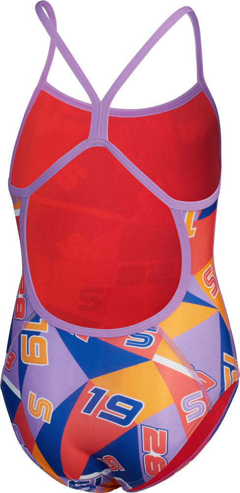 Przebijaj się z pełną prędkością w tym stroju kąpielowym vback, ozdobionym kolorowym retro nadrukiem inspirowanym malowaniem samochodów wyścigowych.