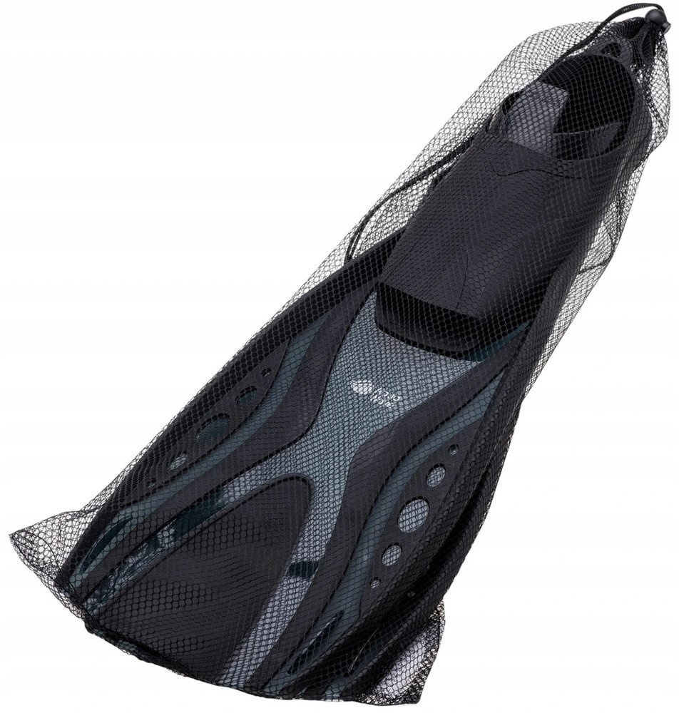 Poręczny pokrowiec z siatki ułatwia transport płetw.