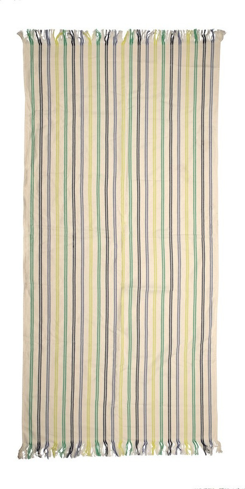 Nasz ręcznik plażowy Fouta przywołuje ciepłe klimaty dzięki tkanym paskom i frędzlom na brzegach.