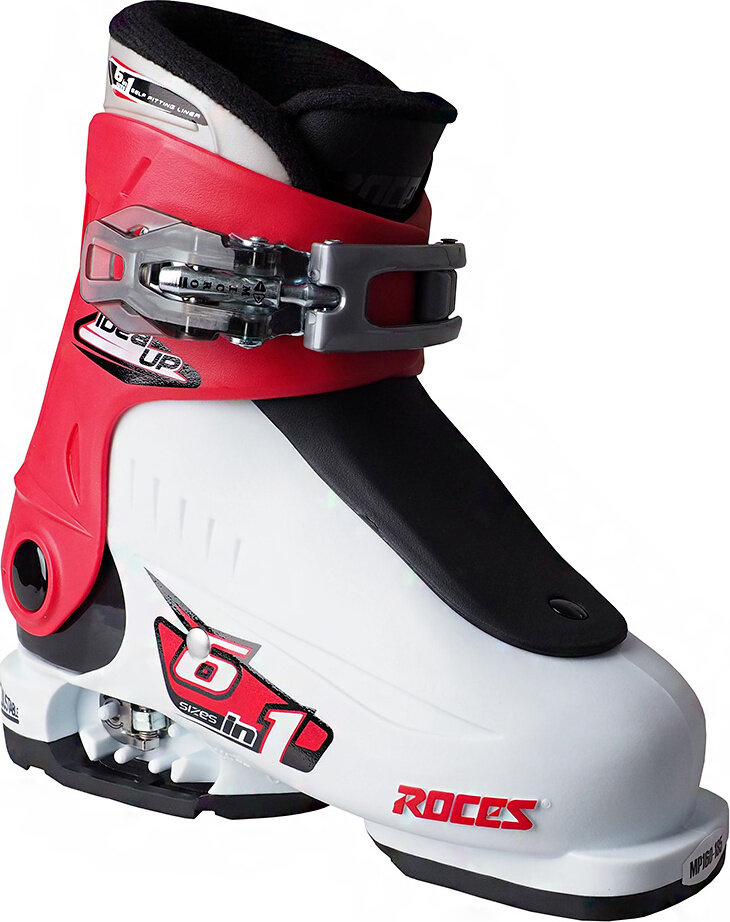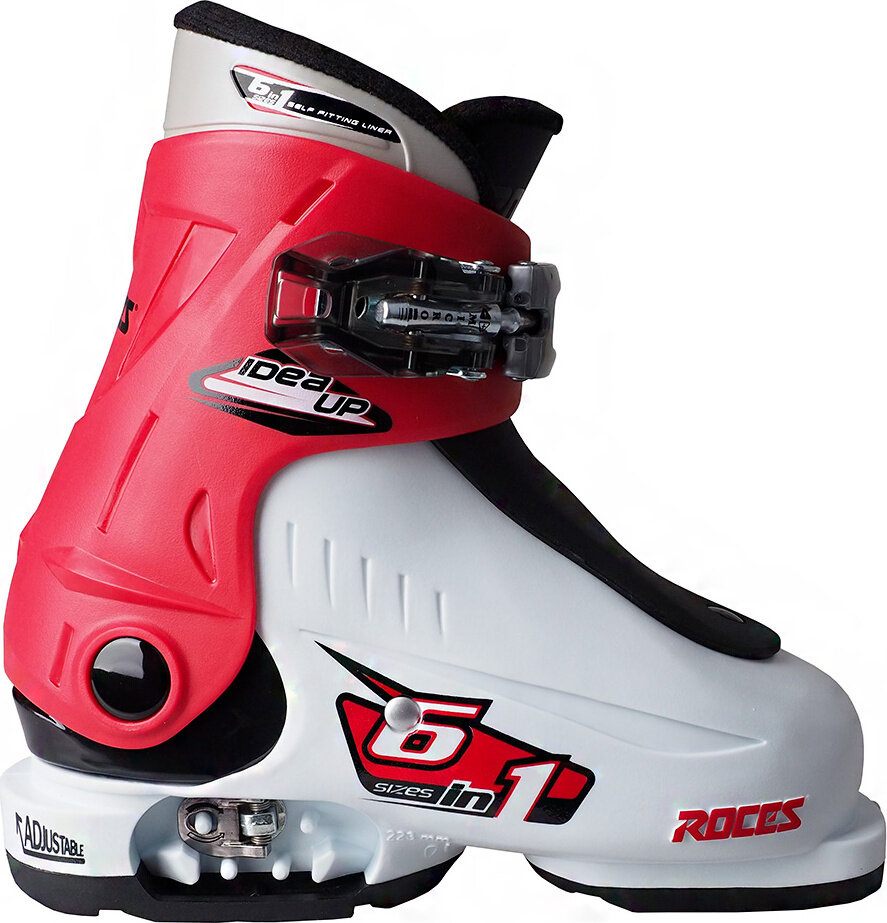 Biało-czerwona sylwetka z czarnymi elementami tworzy uniwersalny model w sportowym stylu. Dziecięce buty narciarskie Roces Idea Up to komfortowy model dla najmłodszych miłośników zimowego szaleństwa na stoku.