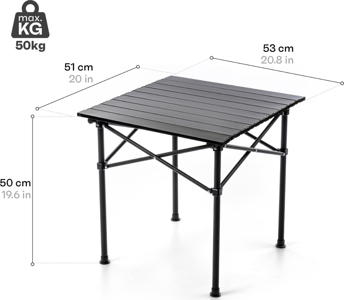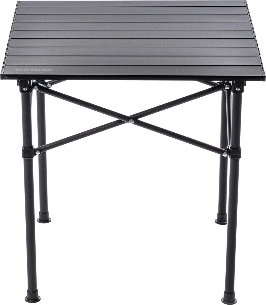 Dane techniczne:· Wysokość: 50 cm· Rozstaw nóżek: 41 cm· Wymiary blatu: 51x53 cm· Wymiary po złożeniu: 52x13x15 cm· Średnica nóżek: 3 cm· Materiał: stal, aluminium· Maksymalne obciążenie: 50 kg· Waga brutto: 2,4 kg· Zestawy turystyczne Meteor zostały stworzone z myślą o wykorzystaniu na świeżym powietrzu podczas wyjazdów kempingowych, w ogrodzie lub na łonie natury.