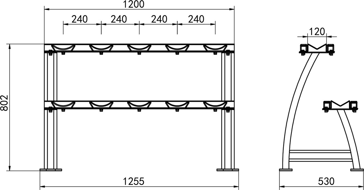 STR38 to solidny i funkcjonalny dwupoziomowy stojak na hantle, który pozwala na przechowywanie do 300 kg obciążeń w uporządkowany sposób.