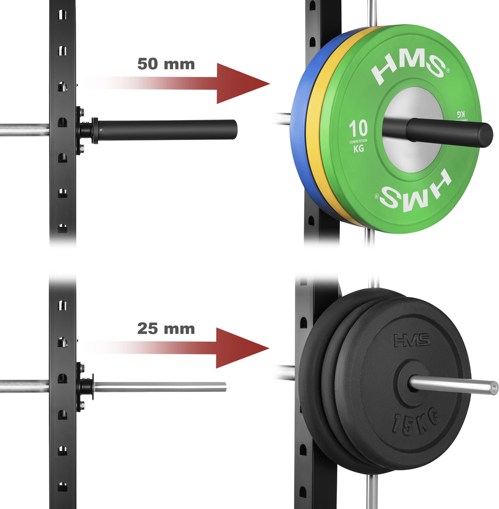 - pełną dowolność rozbudowy sprzętu w obrębie posiadanych talerzy – zarówno olimpijskich, jak i standardowych 25 mm,