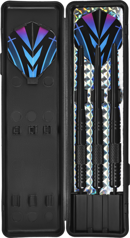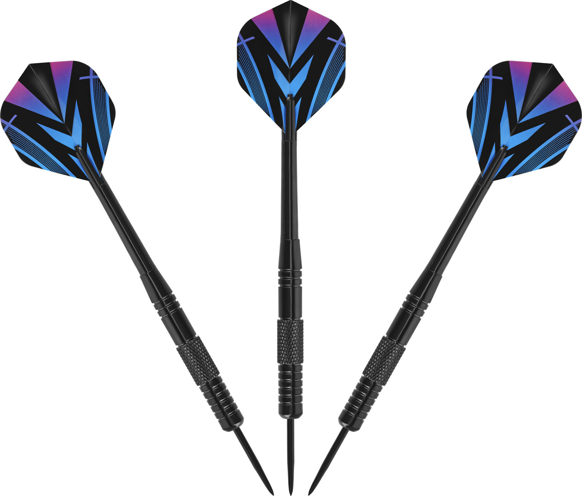 - 3 × 22 g mosiężne rzutki pokryte czarną powłoką, z 3 lotkami PET i 3 nylonowymi trzonkami
