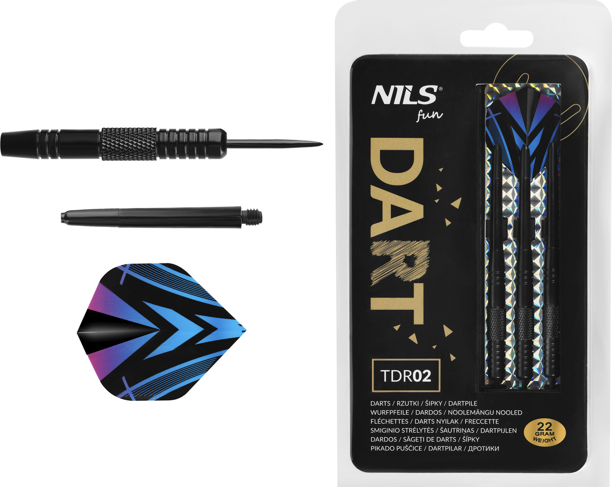TDR02 NILS FUN to zestaw 3 rzutek przeznaczonych do gry w darta, który doskonale sprawdzi się w domowych rozgrywkach.