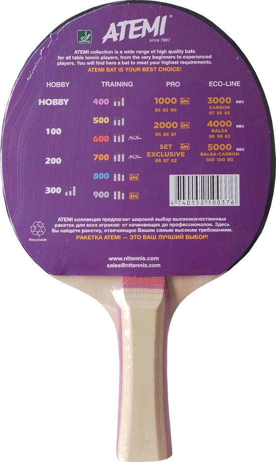 Rakietka do ping ponga New Atemi 300 to wyważony model do rekreacyjnej gry i doskonalenia techniki. 5-warstwowa sklejka jest lekka, a w połączeniu z piankową warstwą i gumową okładziną gwarantuje bezkonkurencyjną kontrolę nad przyjęciem piłki.