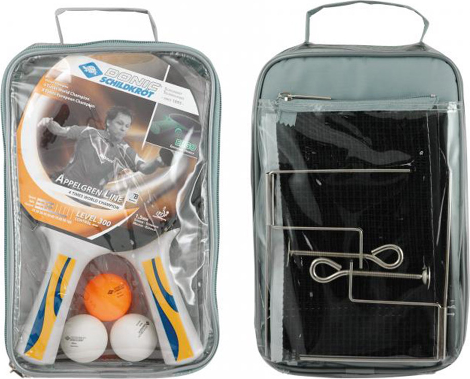 Zestaw składa się z 4 rakiet Appelgren level 300, 3 piłek (2 białych, 1 pomarańczowej), siatki Classic w pokrowcu zapinanym na suwak, z uchwytem dla łatwego przenoszenia.