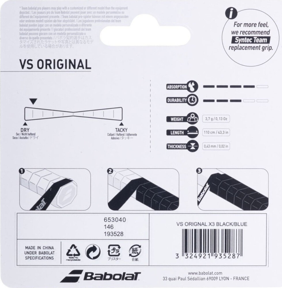 Owijka Babolat Vs Orginal Feel 3 szt. czarno-niebieska 653040 146/193528