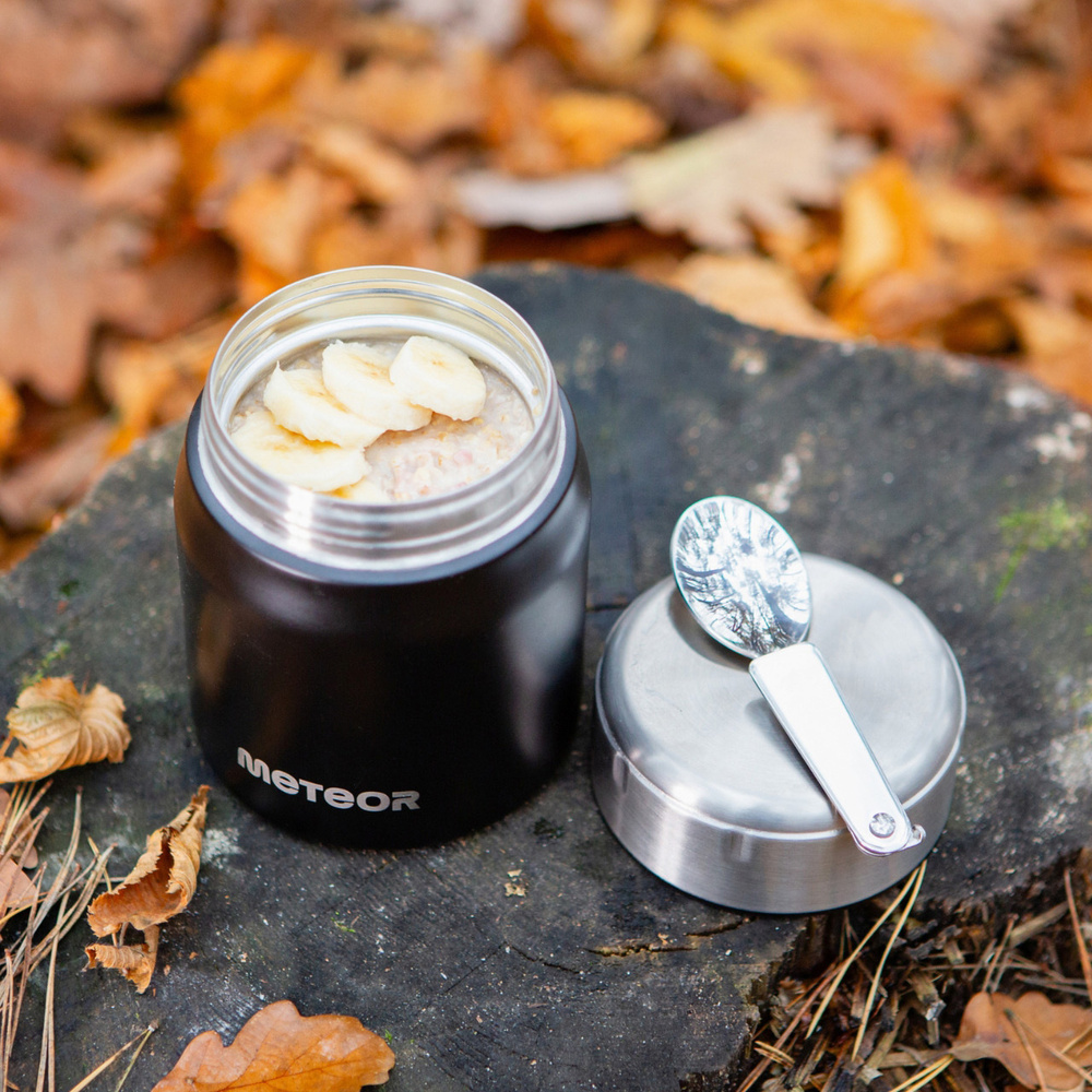 Termos obiadowy Meteor łączy w sobie funkcje tradycyjnego termosu oraz pojemnika do przechowywania żywności.
