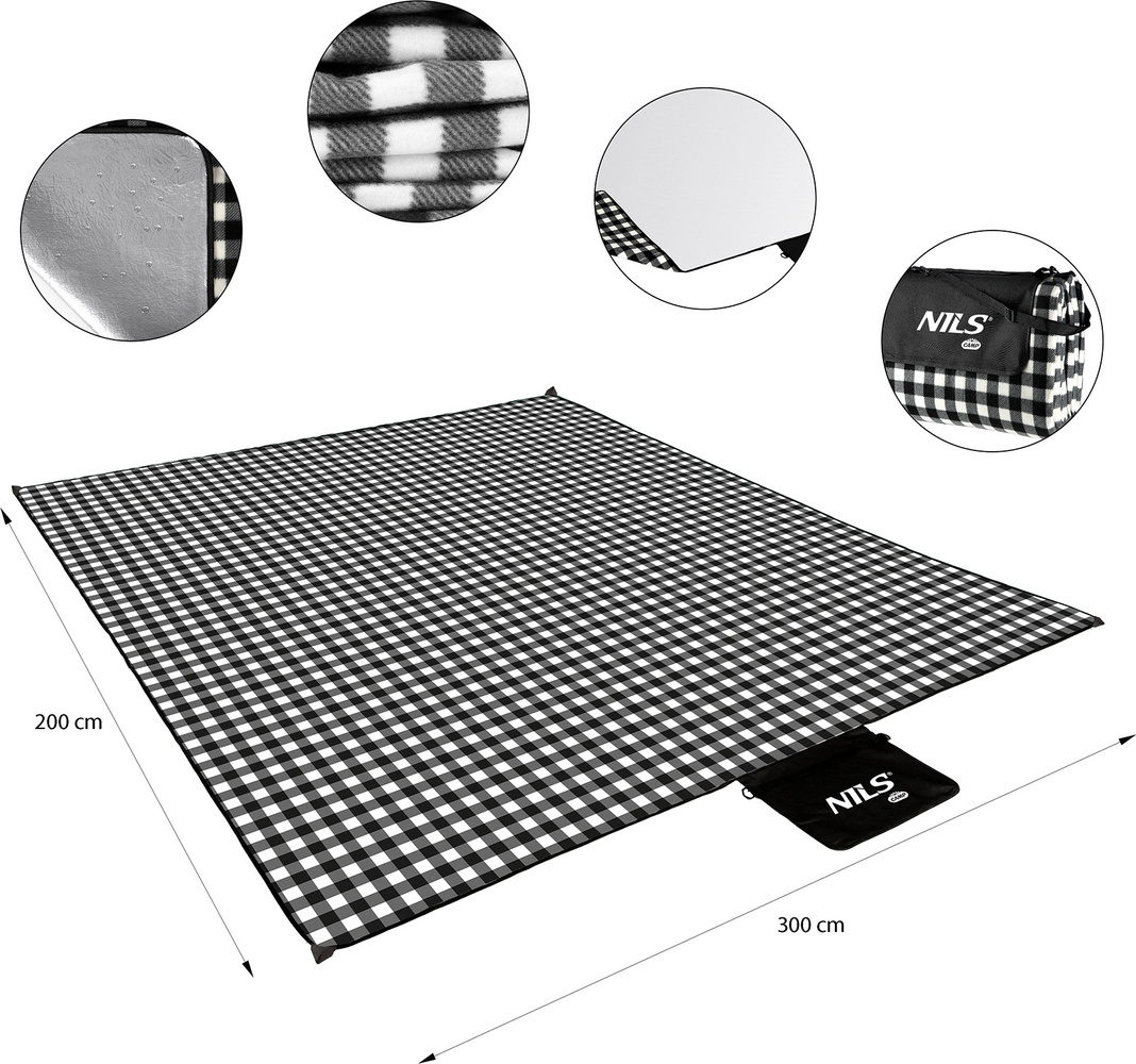 Koc piknikowy biało-czarny 200x200 cm pe alu Nils camp nc2311