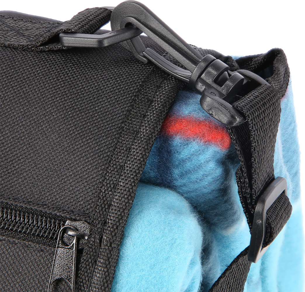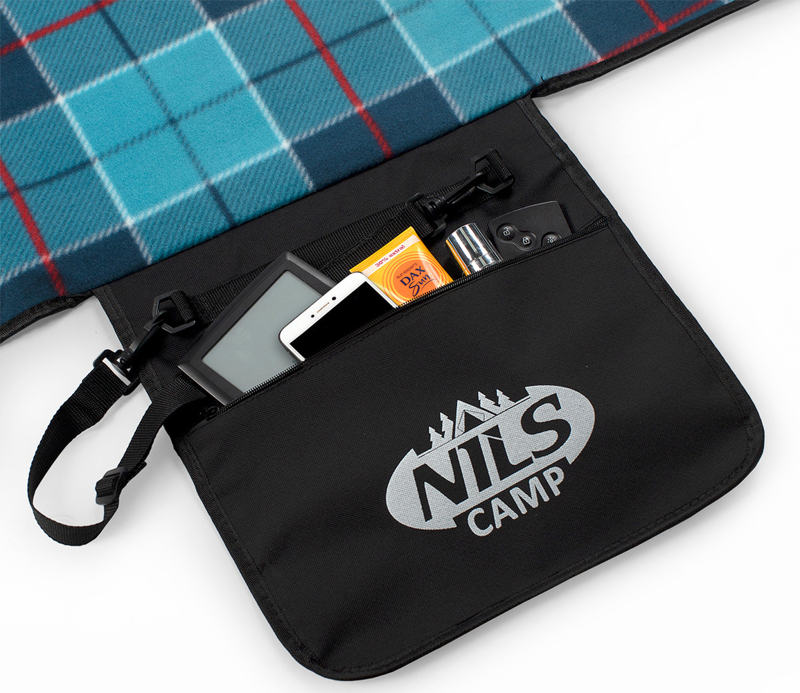 Dodatkowo, koc posiada kieszonkę z zamkiem błyskawicznym.