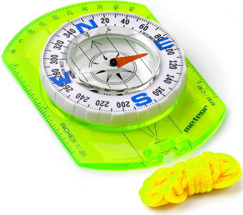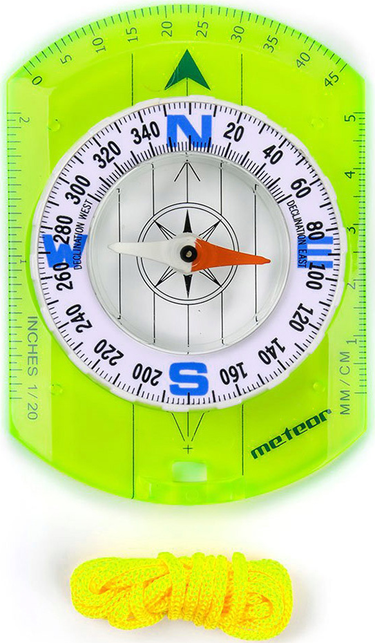 Kompas Meteor 71009 z linijka Materiał: przezroczysty plastik, Średnica tarczy: 35 mm Przeznaczenie: kompas do określenia stron świata oraz wyznaczania azymutu na mapie.