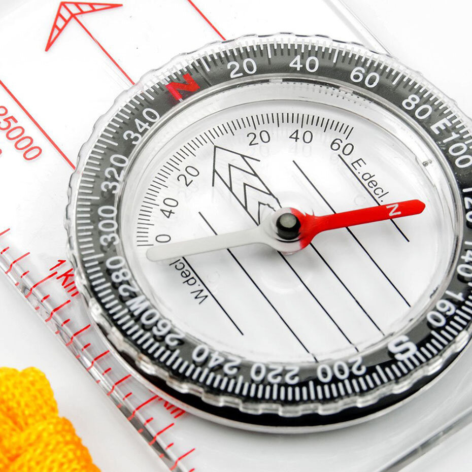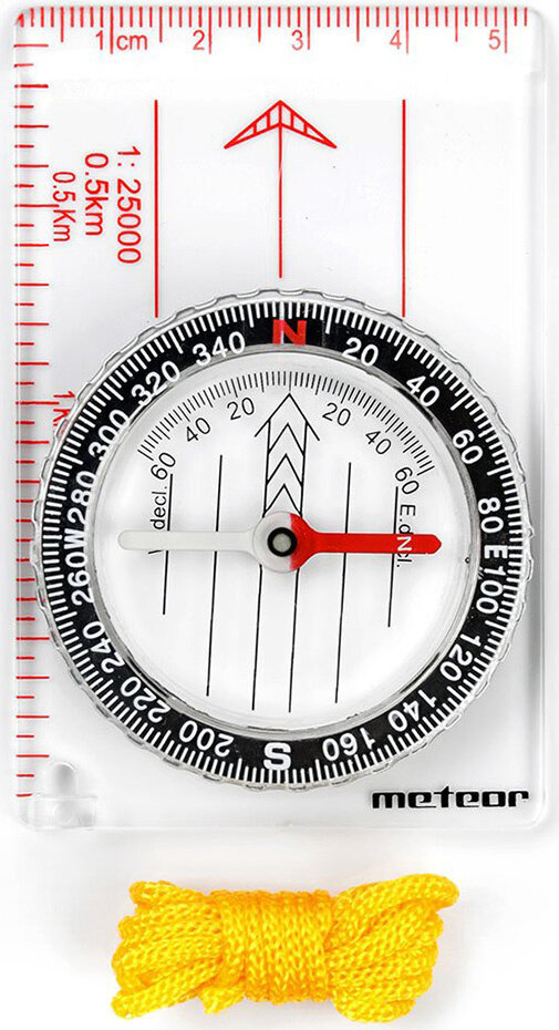 Materiał: przezroczysty plastik,Średnica tarczy: 38 mmPrzeznaczenie: kompas do określenia stron świata, oraz wyznaczania azymutu na mapie.