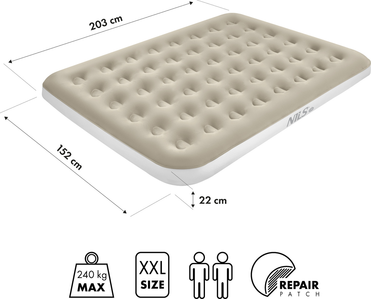 Materac turystyczny dmuchany dwuosobowy Nils Camp beżowy 203x152x22 cm