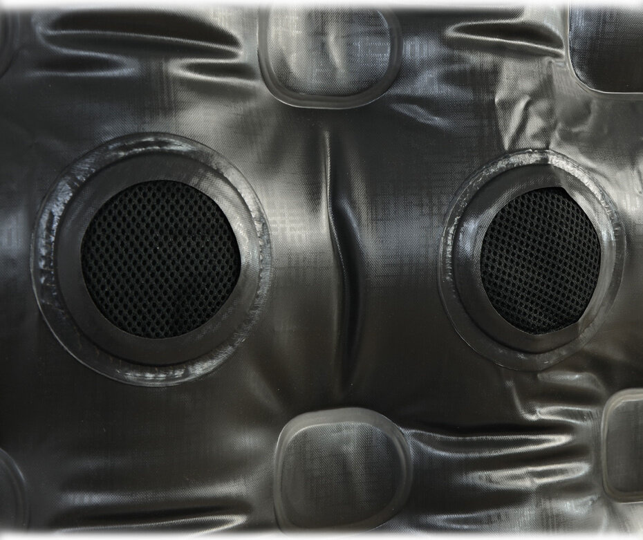 Materac dmuchany jest za pomocą zewnętrznej pompki (ręcznej, nożnej).