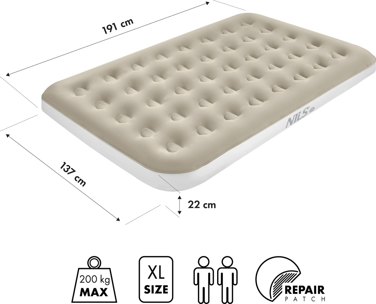 Materac welurowy dwuosobowy kempingowy Nils Camp NC2802 beżowy 191x137x22 cm