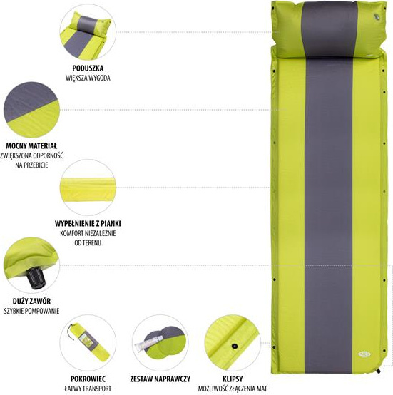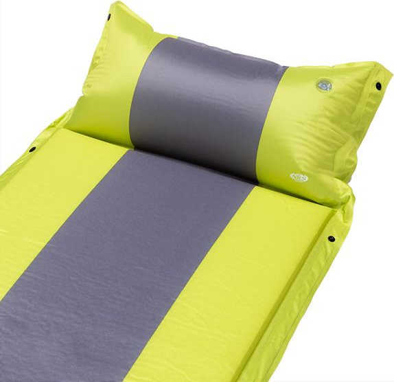 Mata samopompująca kempingowa turystyczna z poduszką Nils Camp NC4349 zielono-szara 193x58x3 cm