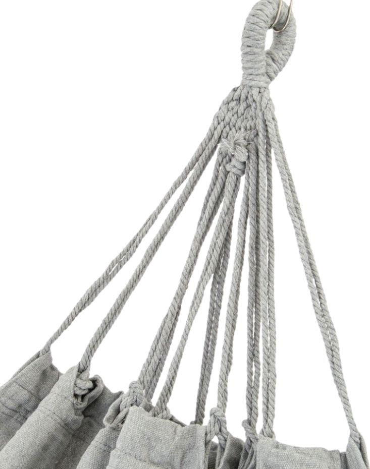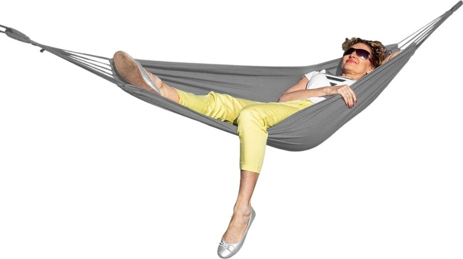 Hamak wykonano z przyjemnego w dotyku, mocnego i wytrzymałego materiału, który zapewnia optymalną wentylację oraz wysoką odporność na odkształcenia i rozdarcia.
