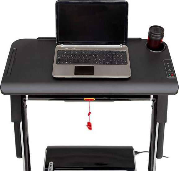 Podłączenie stolika, ogranicza prędkość bieżni do 6 km/h, a więc obsługa laptopa, w trakcie marszu nie będzie problemem.