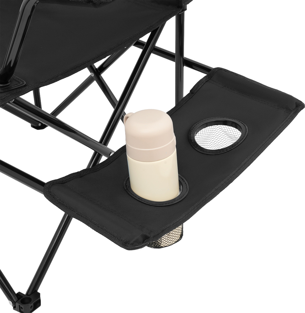 Dodatkowym atutem jest boczny plastikowy stolik z miejscem na napoje – praktyczne rozwiązanie, które pozwala mieć wszystko pod ręką, bez potrzeby wstawania czy sięgania do plecaka.