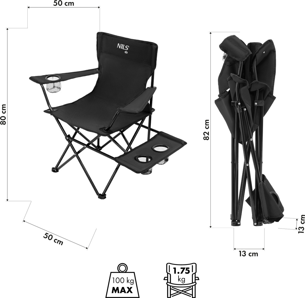 Krzesło fotel turystyczne plażowe składane Nils Camp NC3301 czarne