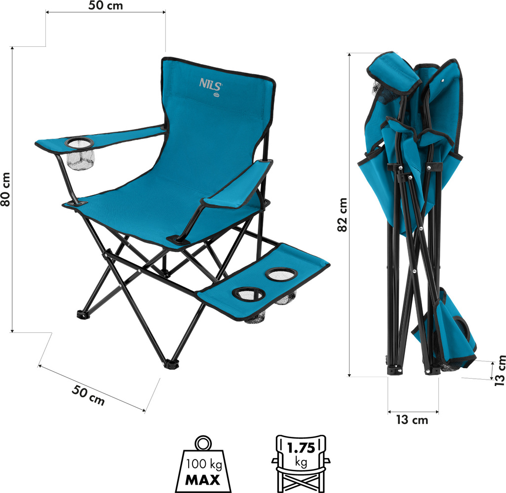 Krzesło fotel turystyczne plażowe składane Nils Camp NC3301 niebiesko-szare