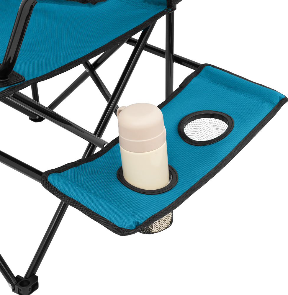 Dodatkowym atutem jest boczny plastikowy stolik z miejscem na napoje – praktyczne rozwiązanie, które pozwala mieć wszystko pod ręką, bez potrzeby wstawania czy sięgania do plecaka.