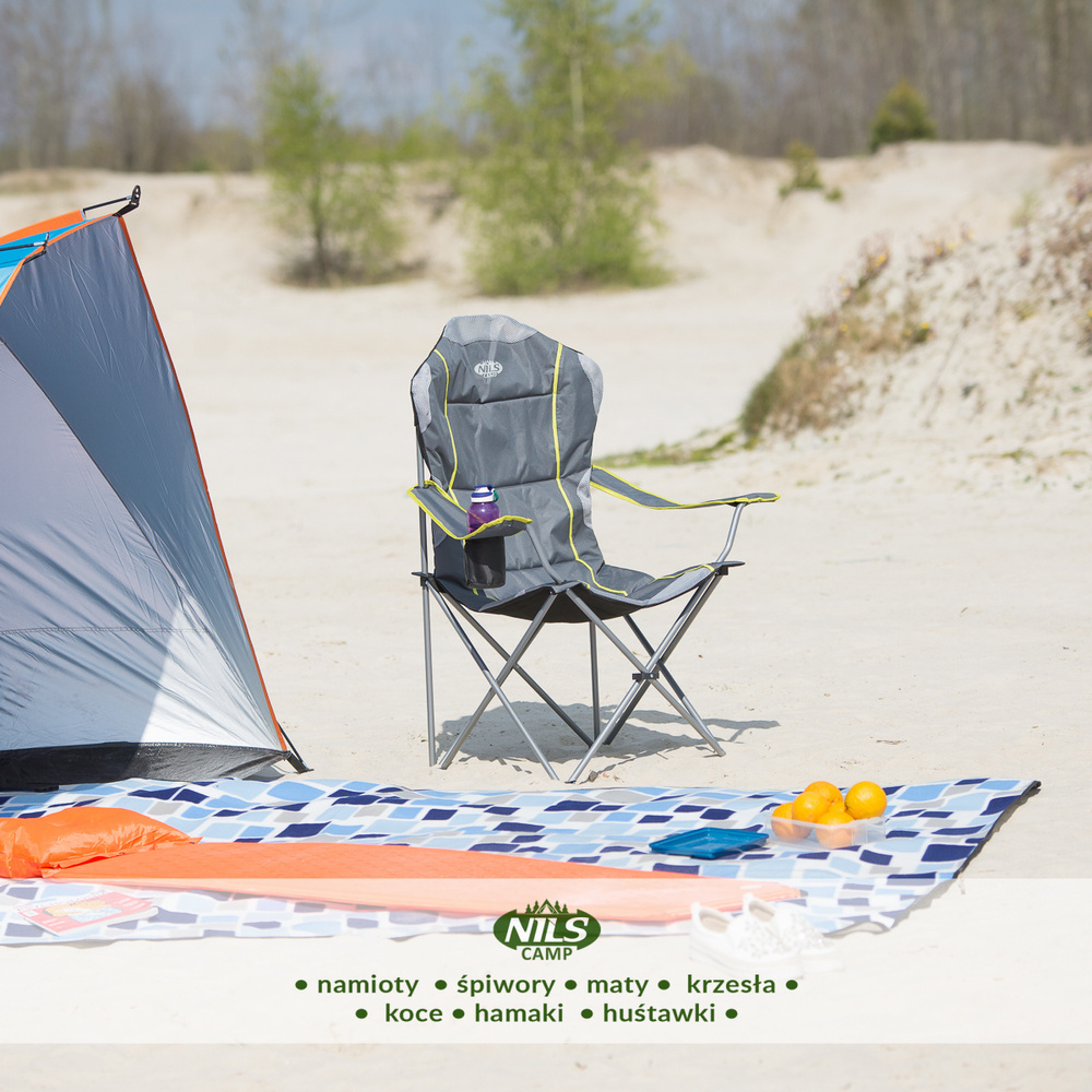 Krzesło fotel turystyczny składany Nils Camp NC3080 ciemnoszary 95x110x50cm