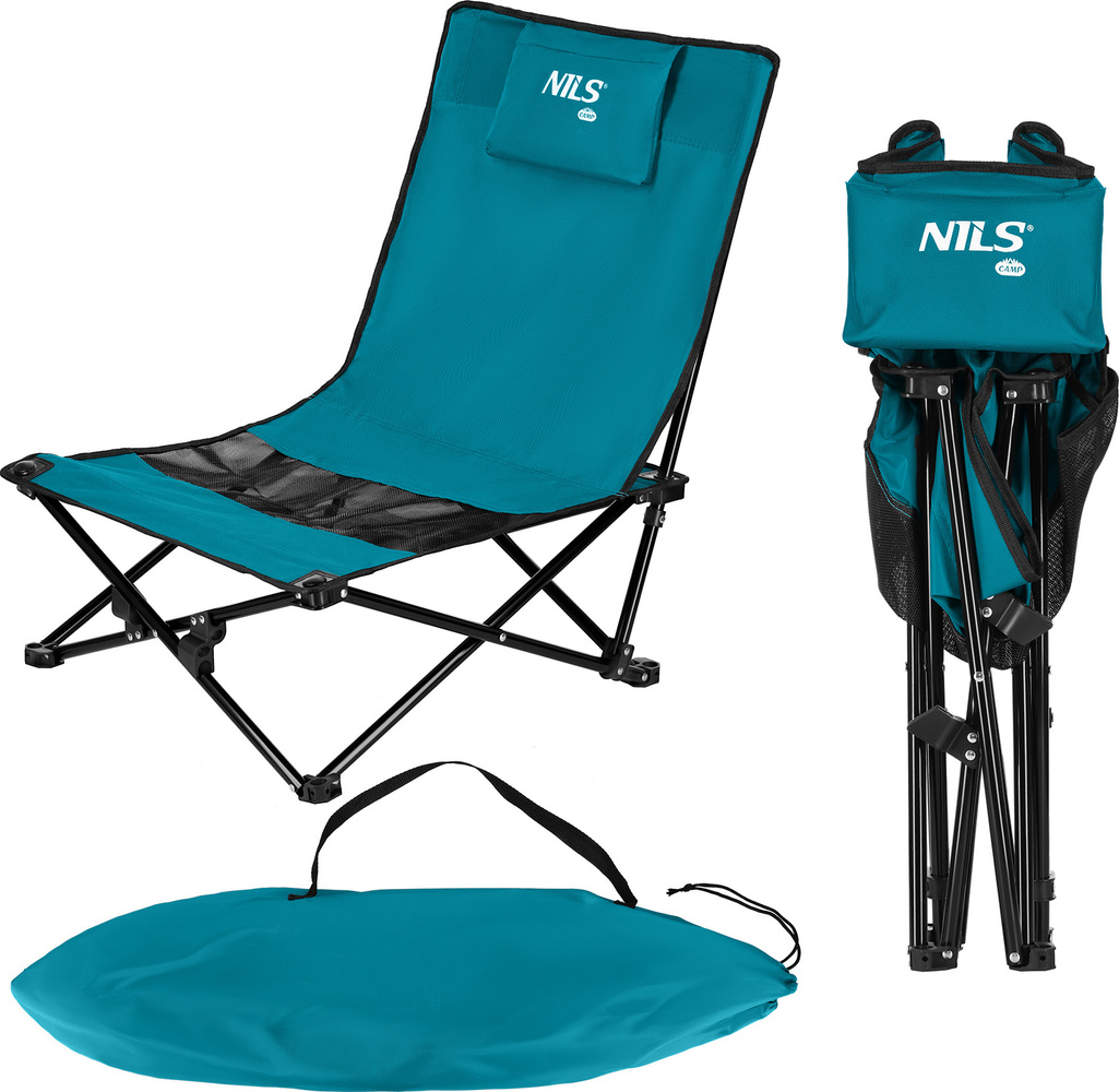 Krzesło turystyczne plażowe składane Nils Camp NC3306 niebiesko-czarne 55×55×68cm