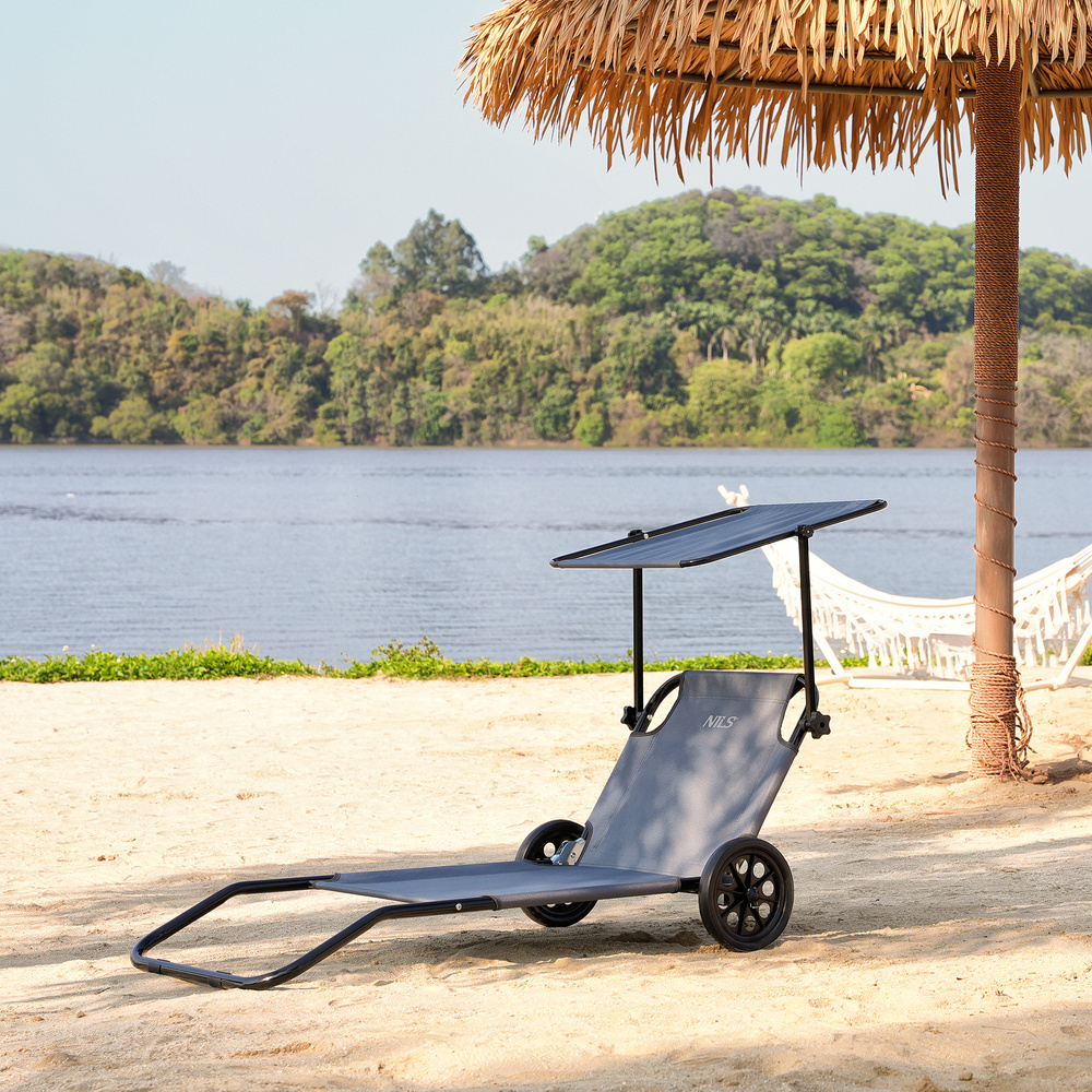 NILS CAMP NC3307 – komfortowy leżak turystyczny z daszkiem i kółkami