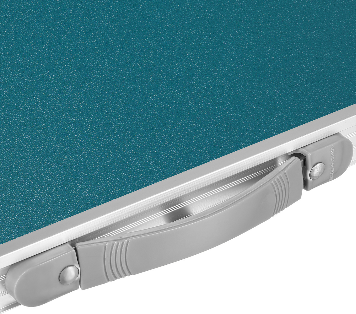 Ten wyjątkowy stół wykonany jest z wysokiej jakości materiałów - solidna aluminiowa konstrukcja i blat wykonany z płyty MDF zapewniają stabilność oraz niską wagę samego produktu.
