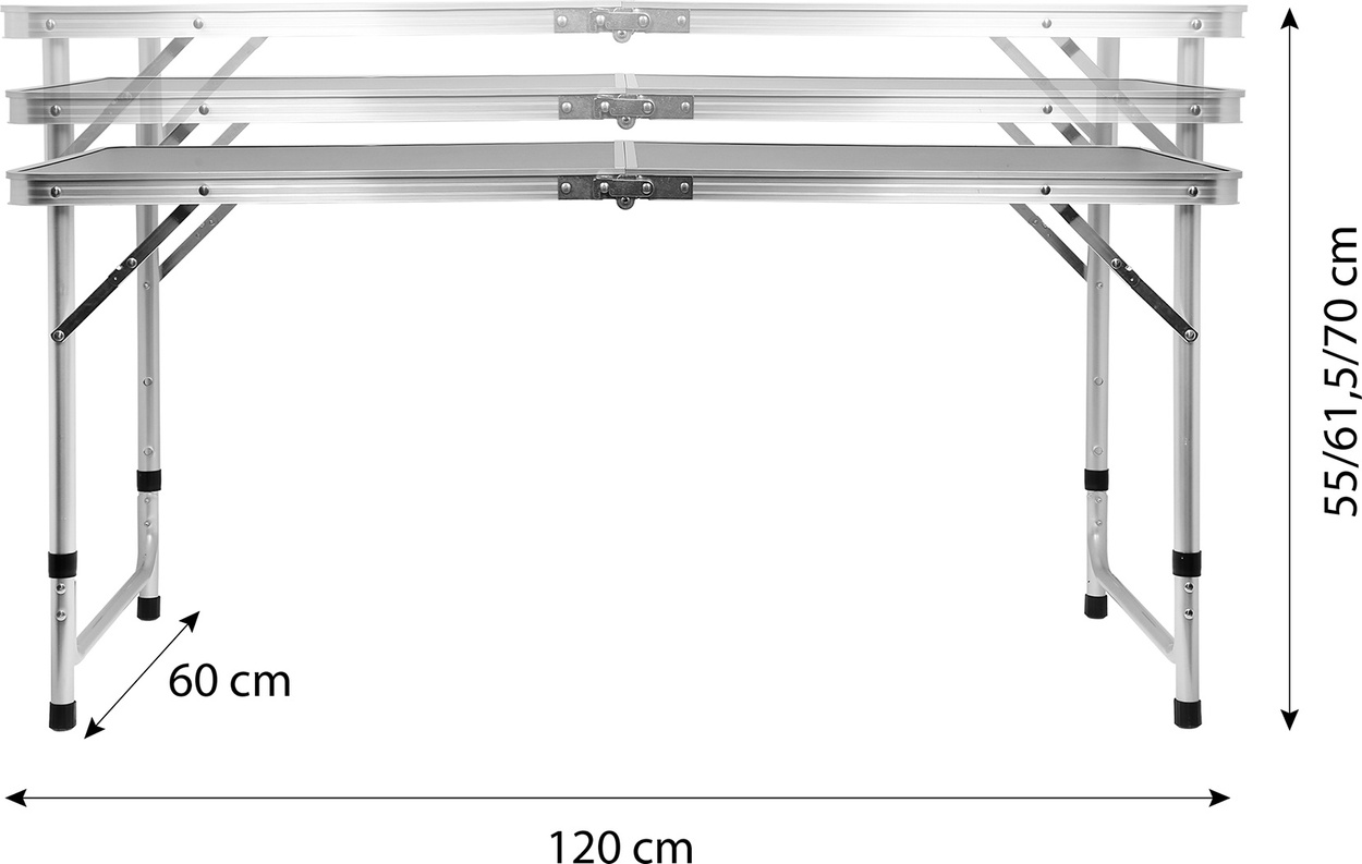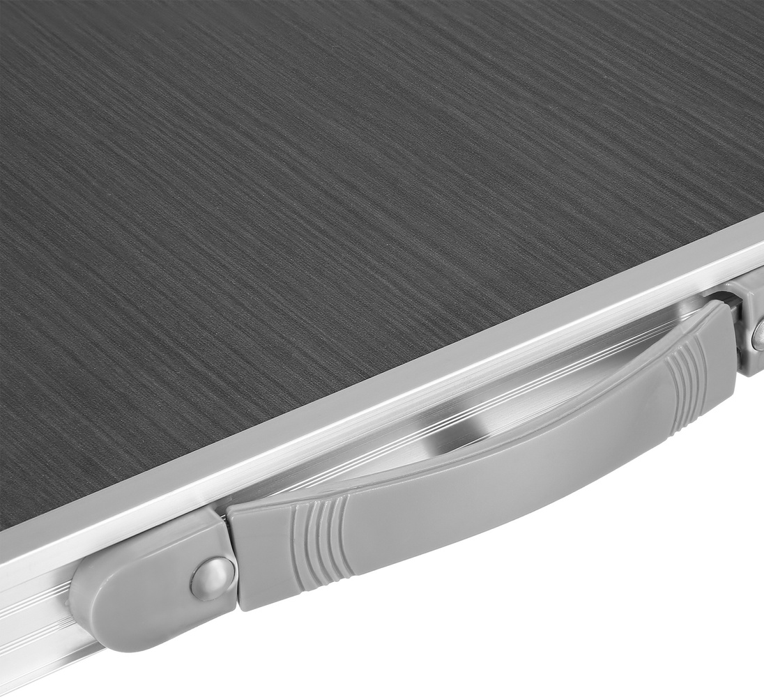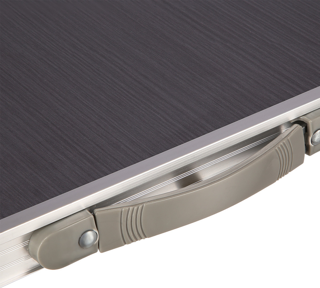 Ten wyjątkowy stół wykonany jest z wysokiej jakości materiałów - solidna aluminiowa konstrukcja i blat wykonany z płyty MDF zapewniają stabilność oraz niską wagę samego produktu.