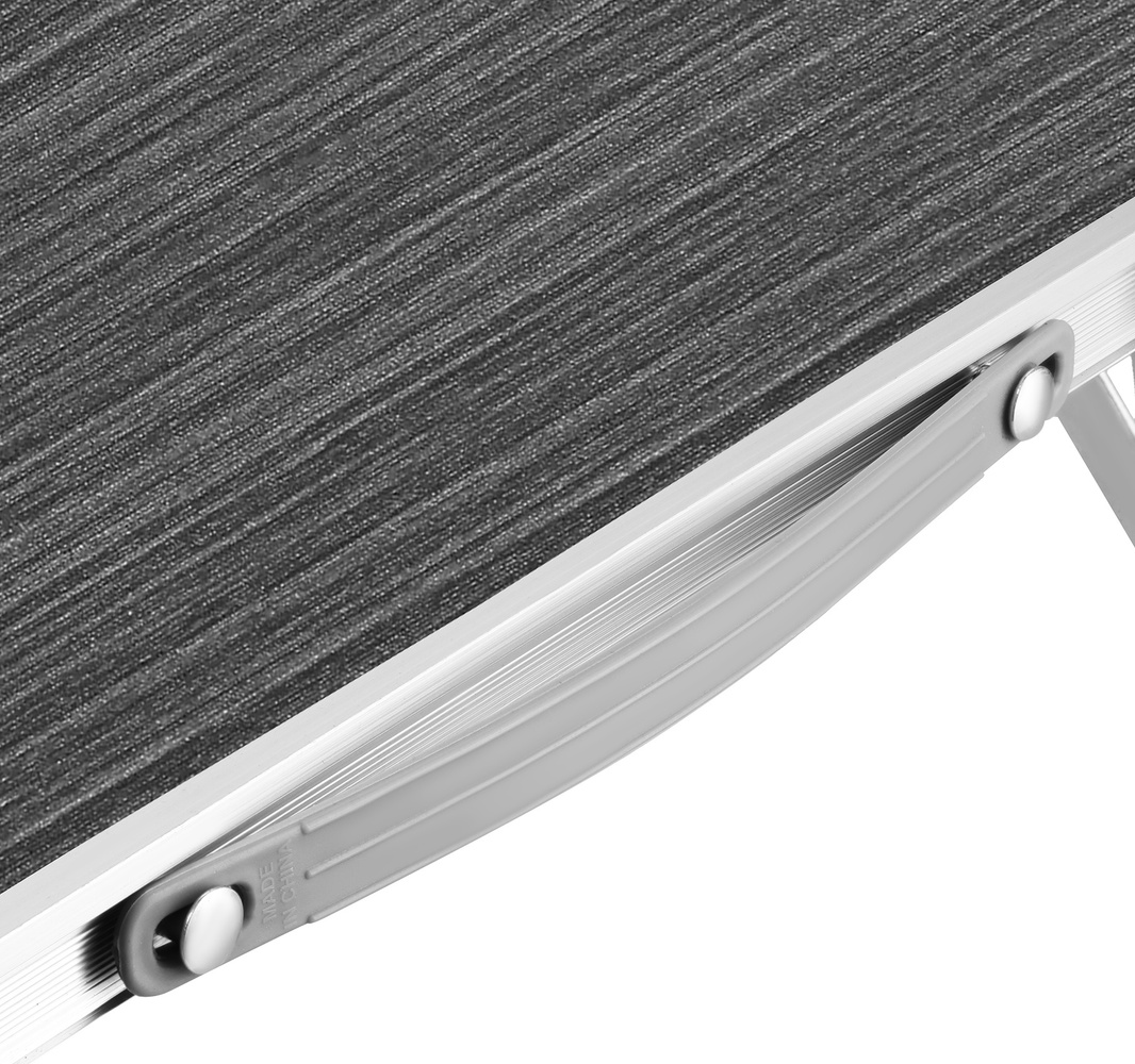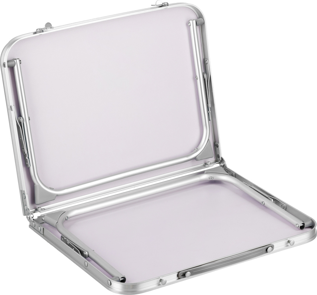 Rama i nogi stołu zostały wykonane z aluminium, co zapewnia wyjątkową lekkość, a jednocześnie dużą stabilność.