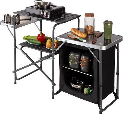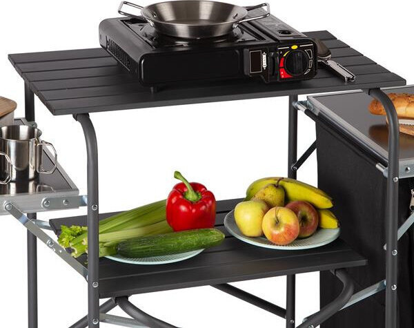 Dzięki otwartym półkom i przestronnej szafce zamykanej na zamek błyskawiczny, przechowywanie produktów spożywczych jest nie tylko wygodne, ale i bezpieczne.
