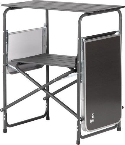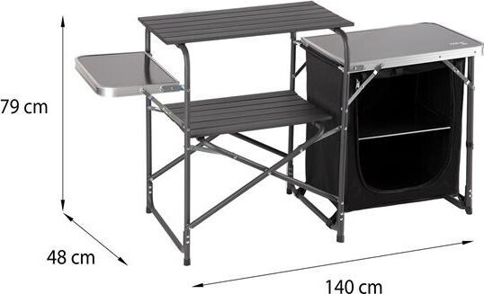 - Blaty boczne z łatwością można złożyć, zmniejszając tym samym gabaryty szafki, co pozwala na dostosowanie się do każdych warunków biwakowania.