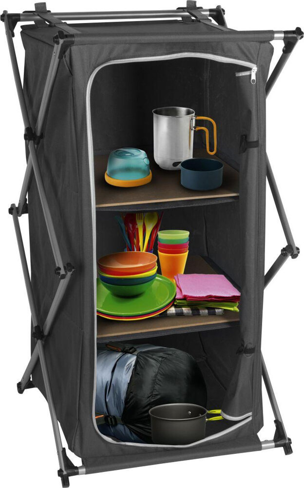 SZAFA TURYSTYCZNA SKŁADANA Z 3 PÓŁKAMI 49x53x95CM CAMP ACTIVE zapewni organizację i przechowywanie niezbędnych rzeczy, takich jak naczynia, artykuły higieniczne czy jedzenie. Jej konstrukcja pozwoli na szybkie rozłożenie i złożenie, co jest bardzo wygodne podczas podróży!