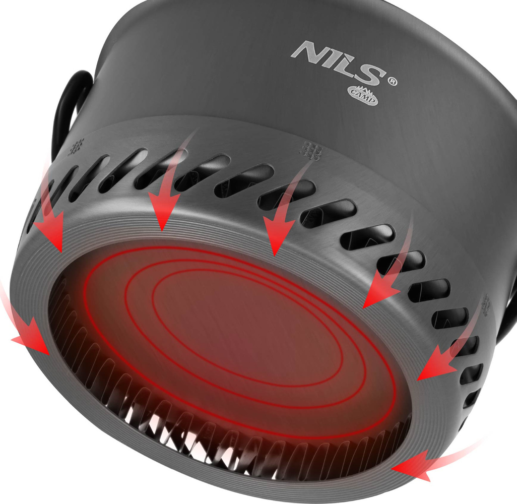 Garnek turystyczny z radiatorem aluminiowy z pokrywką Nils Camp NC4203 1000ml