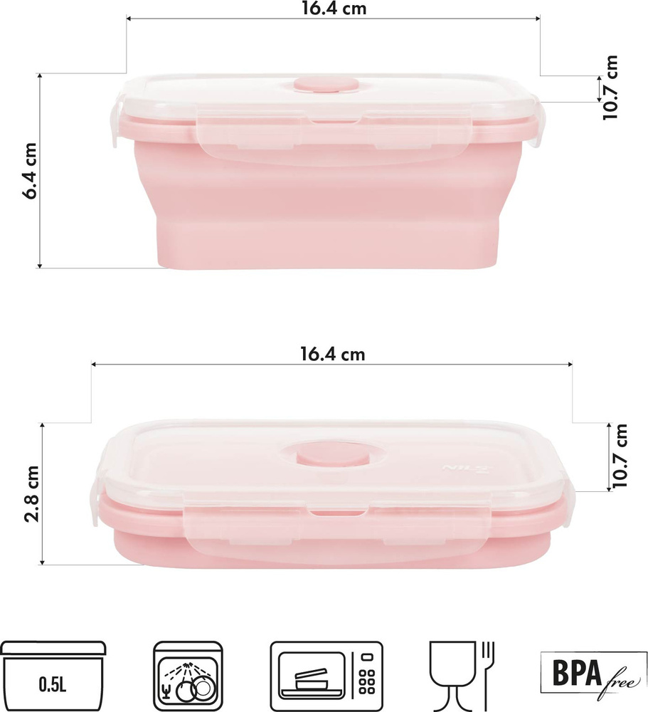Pojemnik na żywność lunch box składany silikonowy Nils Camp NC4105 różowy 500ml