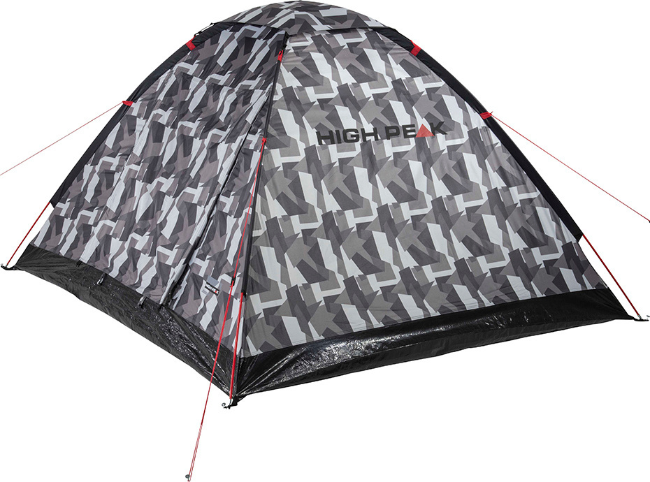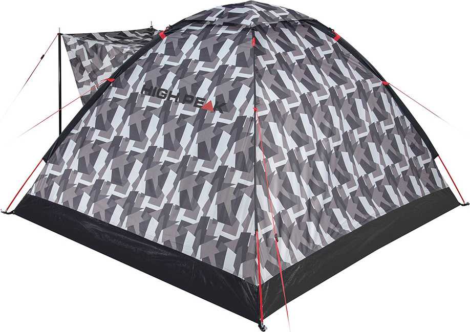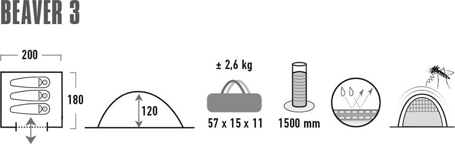 Wzorzysty namiot turystyczny 3-osobowy jest bardzo prosty w rozkładaniu oraz składaniu i jest zapakowany w wygodny pokrowiec ułatwiający transport. Dane techniczne:· Ilość osób: 3· Wodoodporność: 1500 mm słupa wody· Materiał: tropik nie podtrzymujący ognia, 100% poliester pokryty PU; podłoga – 100% polietylen· Stelaż: włókno szklane 7,9 mm; wsporniki daszku stalowe 16 mm· Wymiary: 200 cm x 180 cm x 120 cm· Wymiary po spakowaniu: 57 cm x 15 cm x 11 cm· Waga 2,6 kg